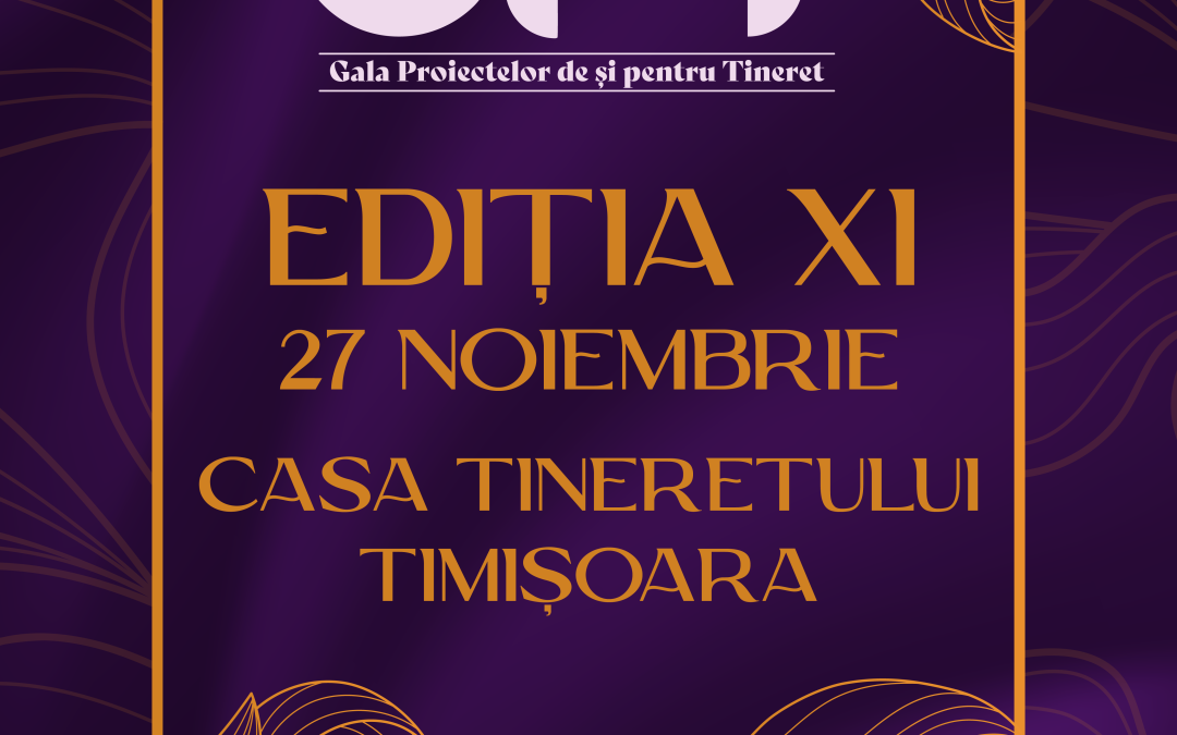 Pe 27 noiembrie, organizăm cea de-a XI-a ediție a Galei Proiectelor de și pentru Tineret, în Casa Tineretului. GPT este un eveniment de tradiție al tinerilor timișoreni, în cadrul căruia se premiază cele mai bune proiecte de tineret și studențești derulate de organizații neguvernamentale sau grupuri de inițiativă ce au avut loc în județul Timiș în ultimul an, precum și cei mai activi voluntari, coordonatori de voluntari și lucrători de tineret și cele mai active consilii ale elevilor și licee.